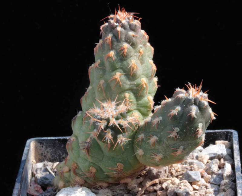 Alle Puna subterranea haben ein sehr kräftiges Wurzelwerk, da ist bei wurzelechter Kultur Vorsicht geboten. Und deshalb hält man diese Pflanzen erst mal als Pfropfung und gibt ihnen die Möglichkeit sich zu entwickeln. Das tun sie auch und machen sehr schnell viele Seitentriebe. Wie ich heute weiß, lassen sich dieses Seitentriebe recht gut bewurzeln.