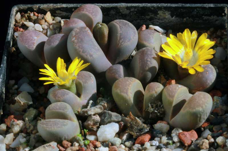 Aus diesem Grund pflanze ich stets mehrere Lithops aus einer Art in einen Flachkontainer. Von einer Einzeltopfhaltung bei Lithops halte ich nämlich nichts. Will ich von einer bestimmten Art Samen ernten, wird das Gebinde separat auf gestellt und der Pollen per Hand übertragen.