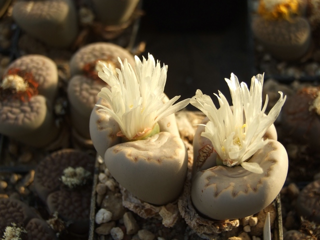 Die gezeigten Lithops stammen aus dem Sukkulentarium von Prof. Dr. L. Diers. Nach meiner Meinung eine der besten Adressen für Lithops. Von Diers erhälten die Interessenten zumteil sehr alte Pflanzen. Meine C 350 stammen aus einer Aussaat, die Diers 1978 gemacht hat und sind seit 2000 bei mir in Kultur.