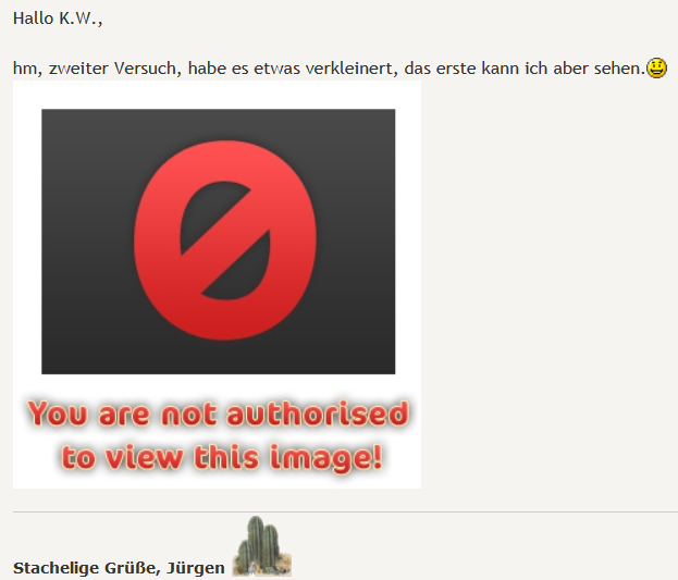 Hallo,Bambi hat geschrieben: 27. August 2021, 12:54 Ich würde gerne die Bilder sehen, bin aber nicht berechtigt. Ist das normal? Warum nicht?