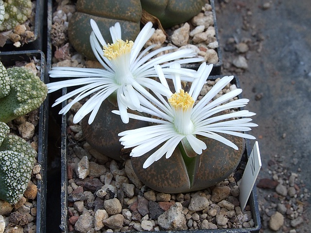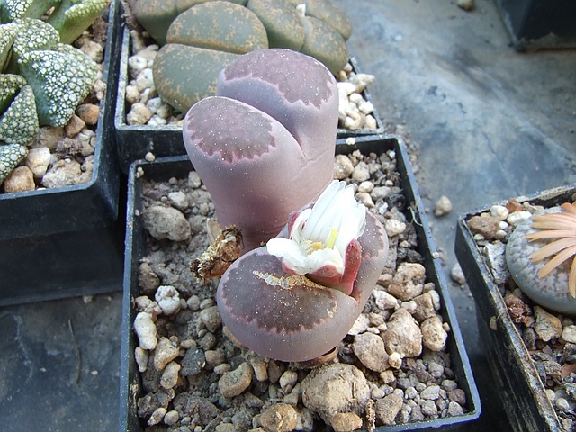 die Blütezeit der gelben Lithops geht langsam zu Ende. Und wie sich das gehört, machen die Weißen brav weiter: Das Bilder von L.karasmontana nicht langweilig sein müssen beweist dieses Foto: Starker Konstrast, so etwas muss gepinselt werden finde ich ...