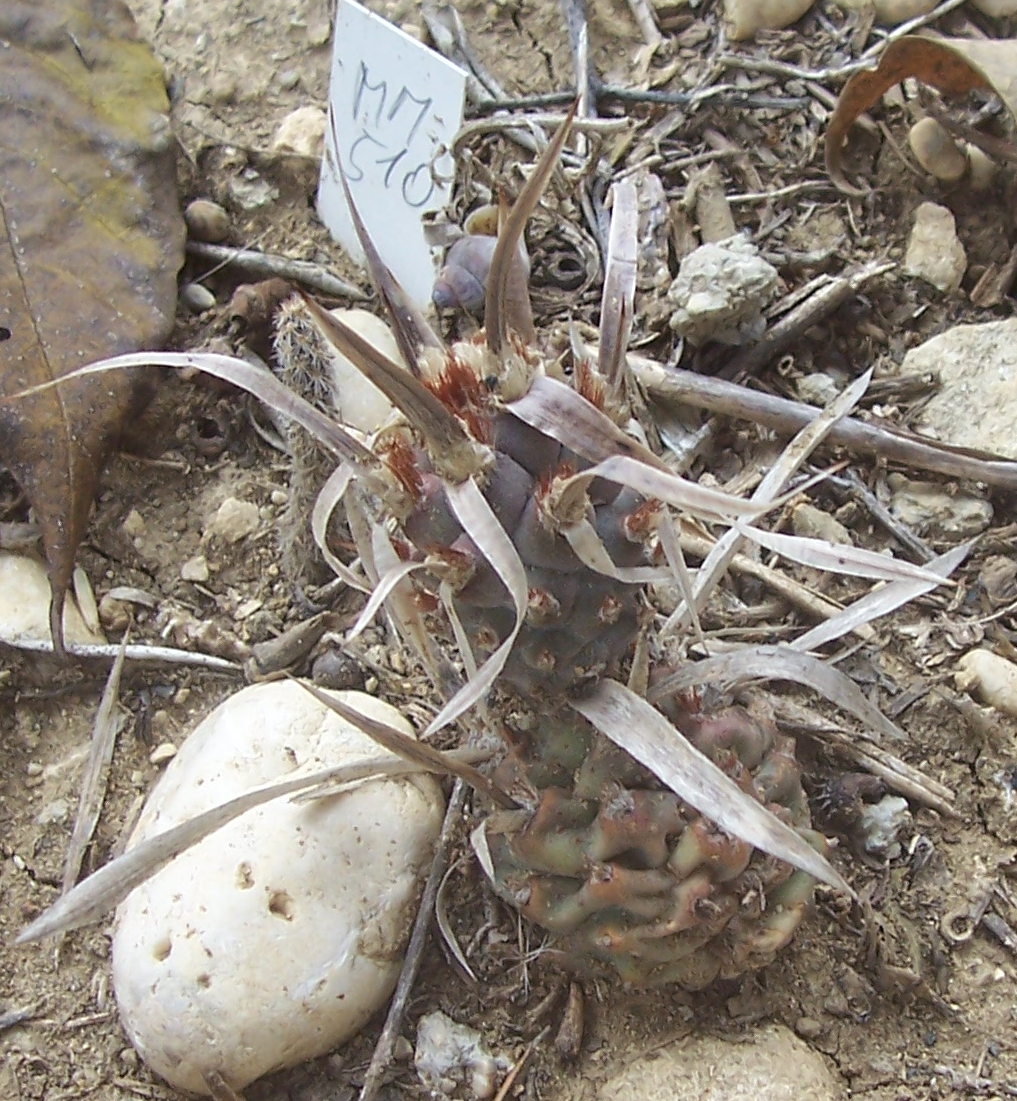 Der auf auf einem älteren Bild zu sehende Neutrieb ist abgebrochen. Auf dem Bild der Gesamtansicht habe ich ihn links oberhalb von M.dawinii wiederentdeckt.