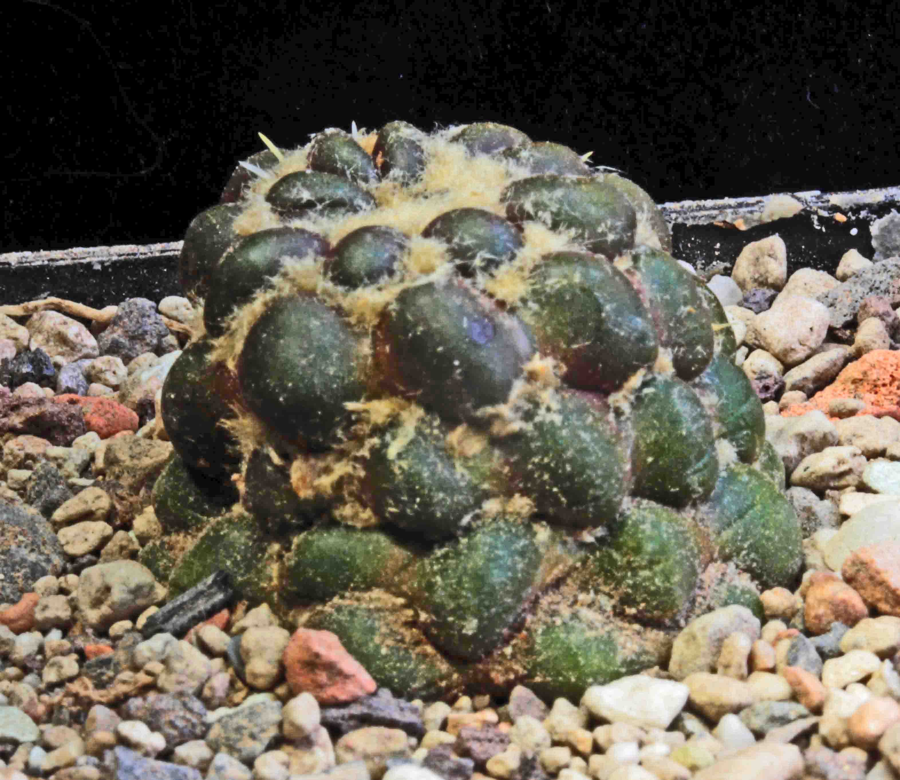 im Frühjahr habe ich von meiner sprossenden Lophophora williamsii ein Kindel abgedreht und auf trockenes Substrat gesetzt.