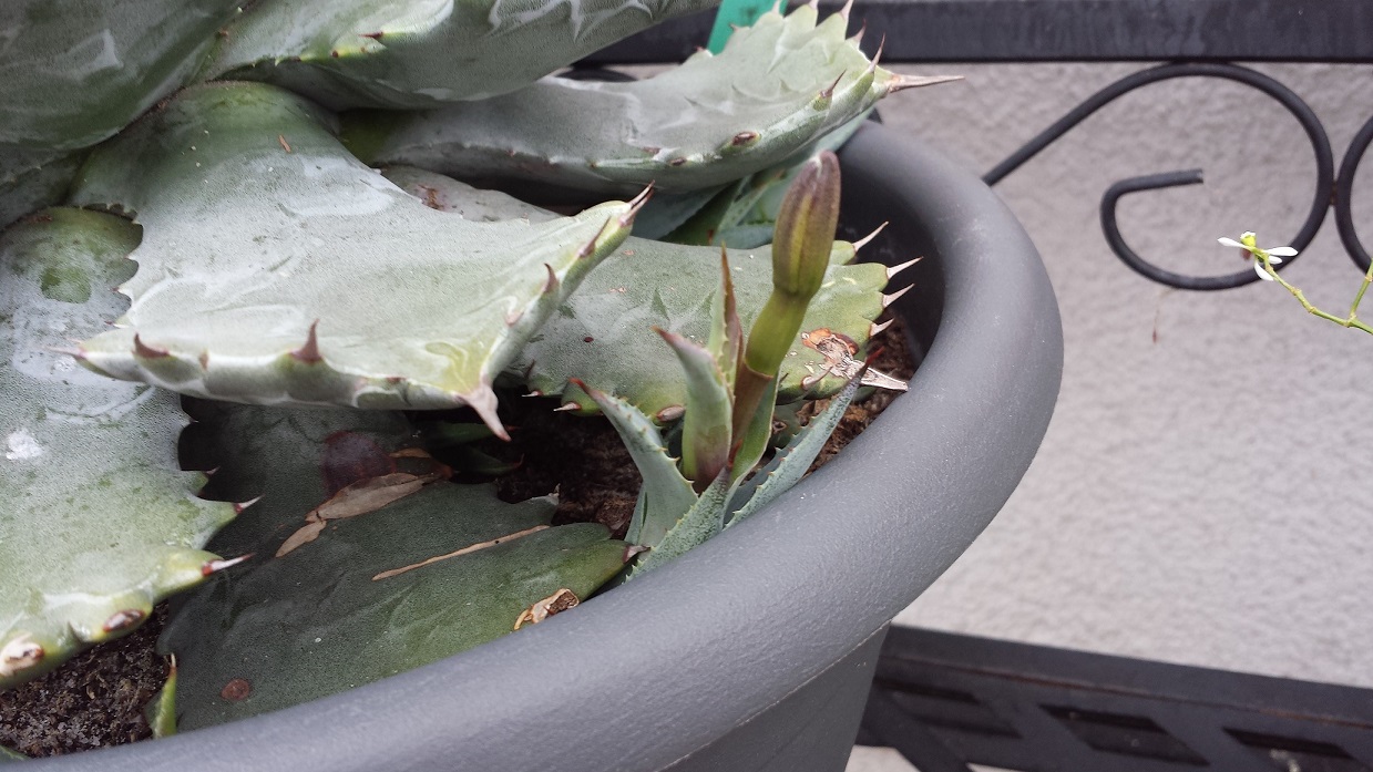 warum einer der Ableger dieser Agave aussieht, als ob in dem Ableger eine Blüte wächst????