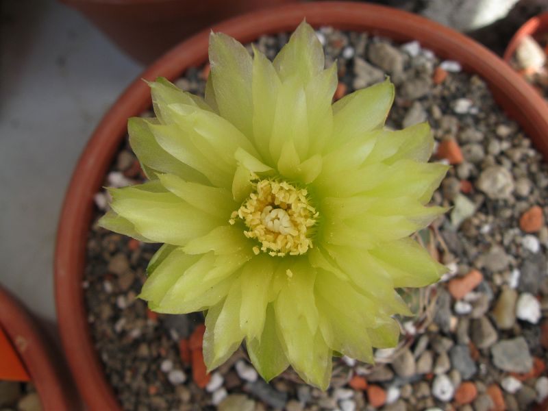 Bild drei ist nun die absolute Herausforderung: Ohne Körper geht gar nicht, Blütenfarbe gelb lässt zwar bei den Gymnocalycien einiges eingrenzen, aber G. leeanum scheint es nicht zu sein nach den wenigen Dornen, die man gerade so sehen kann. Es gibt noch ein paar weitere gelbe - da müssen sich die Fachleute mal melden!