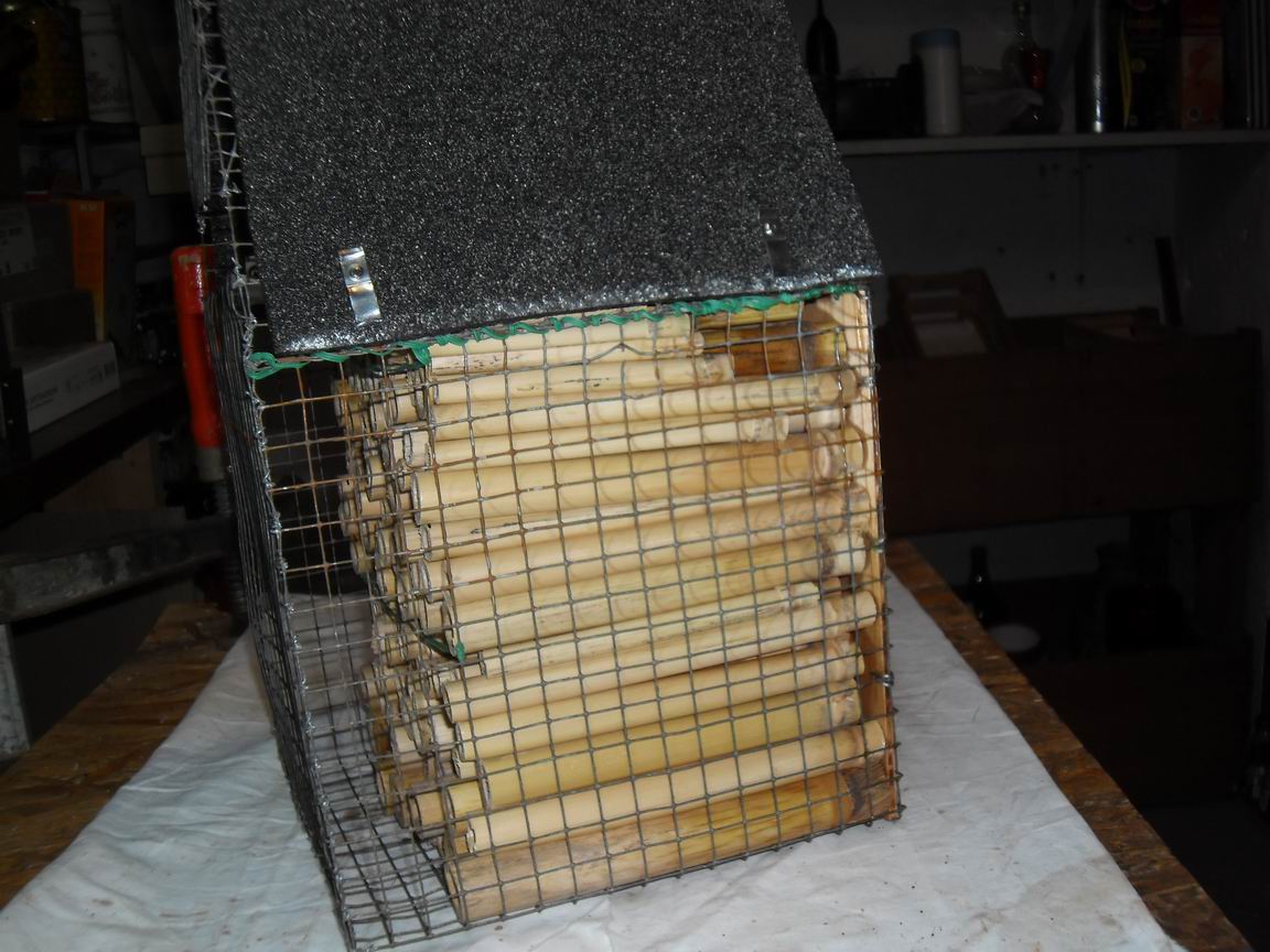 So eine Röhre wird mit bis zu 10 Larven bestückt ,wobei das Weibchen für jedes Ei eine eigene Kammer in der Röhre baut,beginnt am Boden mit Nektar & Pollen dann einen Deckel meist aus Lehmerde, manche machen einen Deckel aus harzigem Pflanzensaft je nach Art verschieden. Wird meist gebaut bis die Röhre gefüllt ist dann einen Schlussdeckel und es ist meistens ein Jahr lang Ruhe.