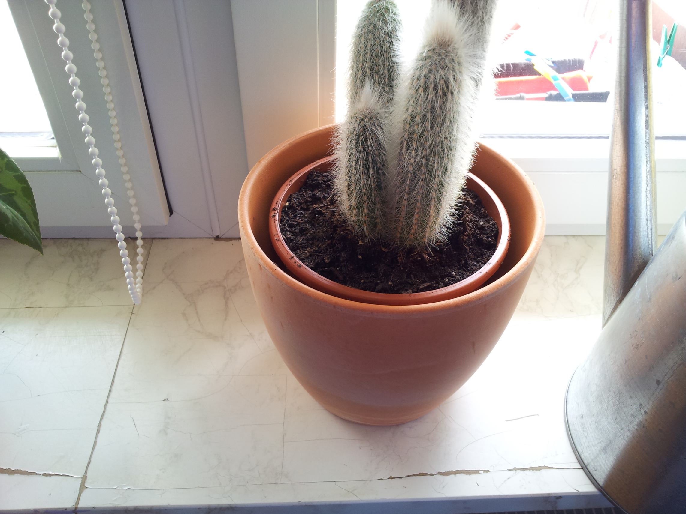 Umtopfen: Cleistocactus strausii wächst als junge Kaktee sehr kräftig und wird deshalb bei Bedarf im Frühjahr in einen größeren Topf umgepflanzt. Ältere, langsamer wachsende Kakteen können aber mehrere Jahre im gleichen Pflanzgefäß bleiben.