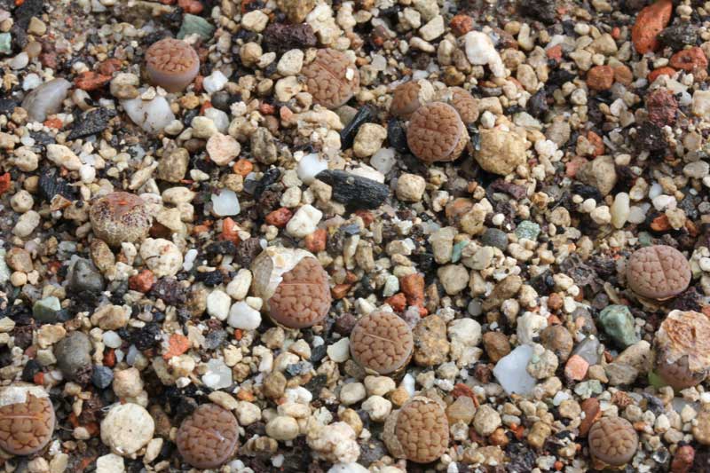 Dass sie ein wenig bunt durch einander stehen, wurde durch meine Pikierhelferin verursacht. Aber im Gegenteil zur schlurfschen Methode pikiere ich lieber einzeln und auf Abstand. Nach meinen Erfahrungen sind Lithops ziemlich robust, sie mögen aber eine nicht: in kürzeren Abständen umgetopft werden. Zwischen zwei Umtopfungen sollten m.M.wenigsten 2 bis 3 Jahre vergehen. Gut, dass es nach dem Einzelpikieren Verluste gibt, kann man an den großen Zwischenräumen erkennen. Bei der großen Anzahl der Lithopssämlinge - meine Pikierhelferin ist Grundschulschülerin mit dem Lieblingsfach Mathe und kam am Ende der Pikieraktion auf 1500 Sämlinge - können diese Verluste aber verschmerzt werden. Bin aber sicher, dass die verbliebenen Sämlinge den freigewordenen Platz nutzen werden, denn die nächste Umtopfaktion für diese Lithopssämlinge ist erst in zwei Jahren geplant. Die Pikierhelferin ist übrigens nicht arbeitslos, denn die nächste Aussaat wächst heran und zweitens versucht sie gerade zuberechnen wieviele Sämlinge auf einem dm² passen wenn der Abstand untereinander 0,8 cm betragen soll...