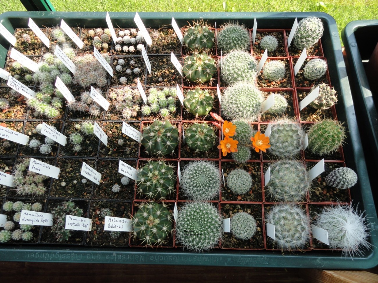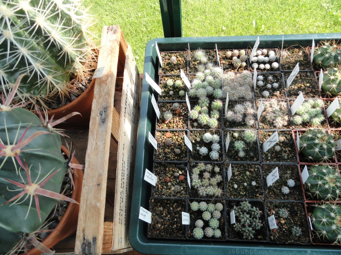 vor 2 Jahren habe ich Rebutia pulvinosa, Rebutia wessneriana und Rebutia xanthocarpa eingesät. Im ersten Jahr waren sie noch ziemlich klein und ich hatte die Befürchtung, dass sie die Winterruhe nicht überstehen. Inzwischen sind sie schon ganz schön gewachsen, die Rebutia wessneriana haben einen Durchmesser von 3 - 5 cm, die Rebutia xanthocarpa 2 - 3 cm und die Rebutia pulvinosa 3 - 4 cm und diese hat dieses Jahr auch schon geblüht. Letztes Jahr habe ich eine ganze Reihe anderer Rebutien eingesät, die ich unter Kunstlicht über den Winter gebracht habe, inzwischen stehen sie im Gewächshaus, mal sehen wie sich die dieses Jahr noch weiterentwickeln. Kann schon sein, dass ein paar während der Winterruhe noch den Geist aufgeben. Ist halt immer ein mühsames Geschäft mit der Nachzucht aus Samen.
