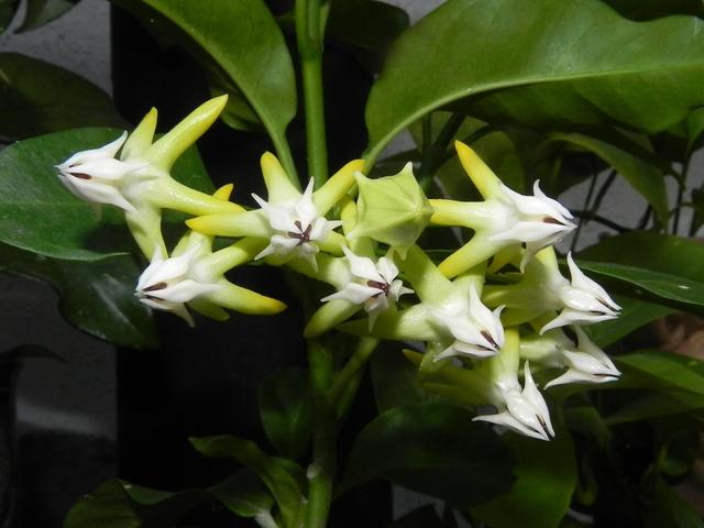 Wie man an meinem letzten Beitrag sieht, hab ich an meiner linearis am 18.9. Pedunkeln entdeckt. Heute, ganau einen Monat später, am 18.10. sind die Blüten aufgegangen! Meine ersten Hoyablüten ... durch den Erfolg angestachelt, sind inzwischen noch 6 weitere Hoya-Arten dazugekommen.