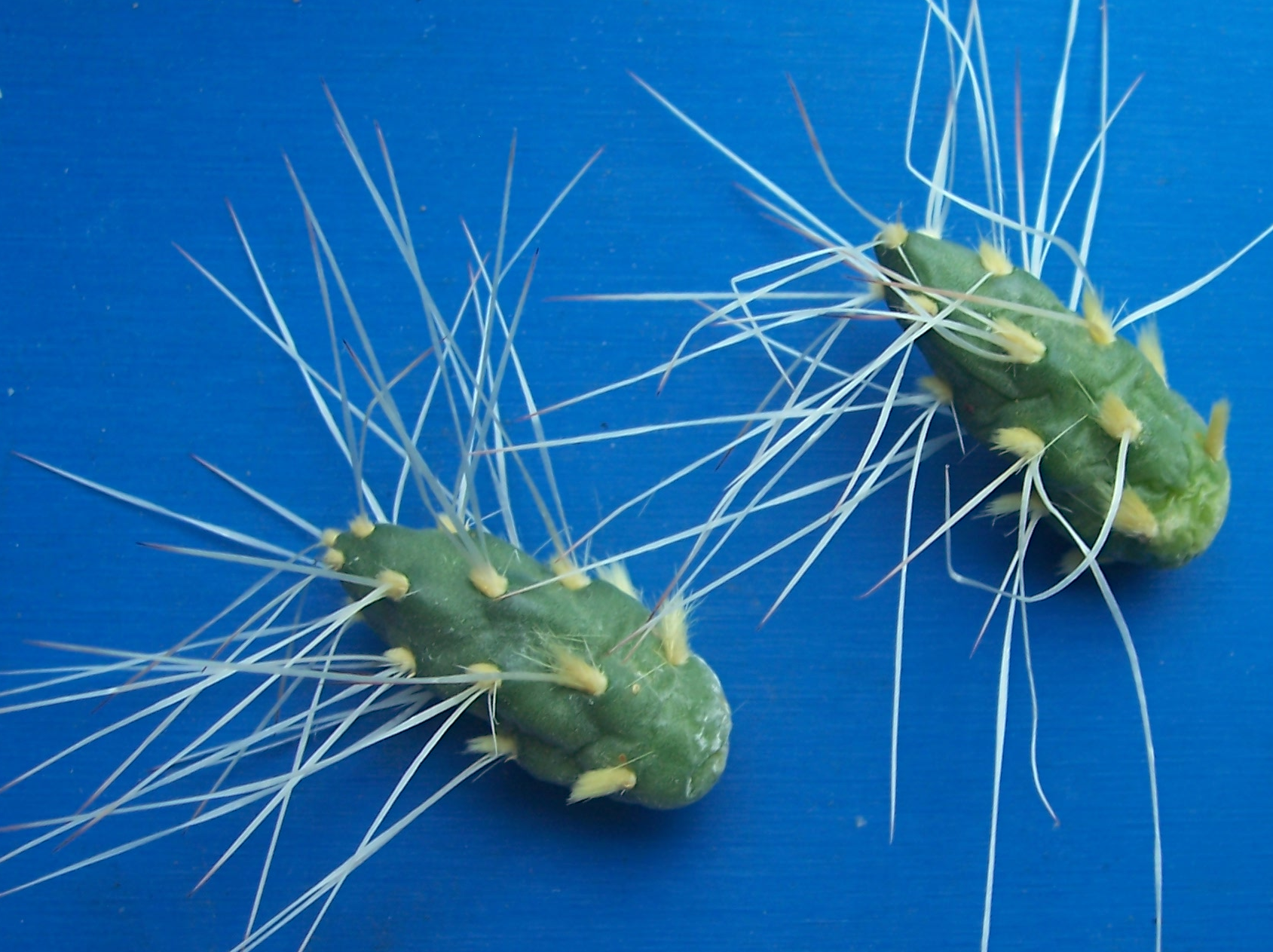Zu der Nummer HS 263 kann ich nichts sagen. Möglicherweise ist sie falsch. Angeblich soll sie von Abra Pampa , Jujuy, Argentinien stammen Maihueniopsis colorea PM231 hat sehr dünne weiße Dornen. Wenn sie mehr Licht bekommt sind die Dornen länger aber nicht viel dicker. Auch diese Pflanze ist sehr leicht zu halten neigt, bei mir, aber nicht zu neuen Trieben wenn sie zu wenig Licht bekommt so das die Pflanze, bei zu dunklem Stand, einen besseren eindruck macht als M.hypogea. Das Dornendetail zeigt das, zumindestens dieser Klon gerne wellige, gebogene und sogar leicht verdrehte Dornen ausbildet.