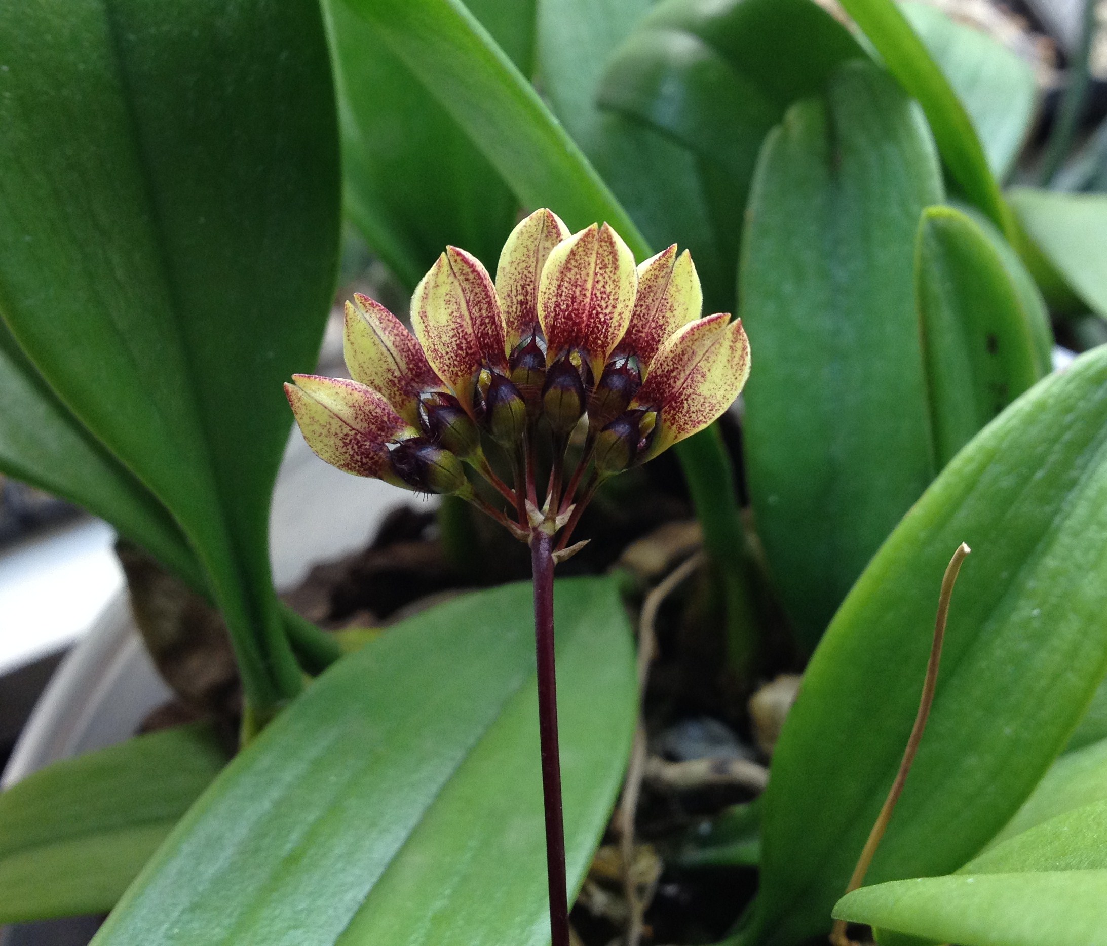 leider ist es das Gegenteil, wir haben eine sehr niedrige Luftfeuchtigkeit hier .... Anbei ein Bild aus dem Botanischen Garten, diese einheimischen Orchideen habe ich auch, aber noch bluehen sie nicht. (Eulophia leachii)
