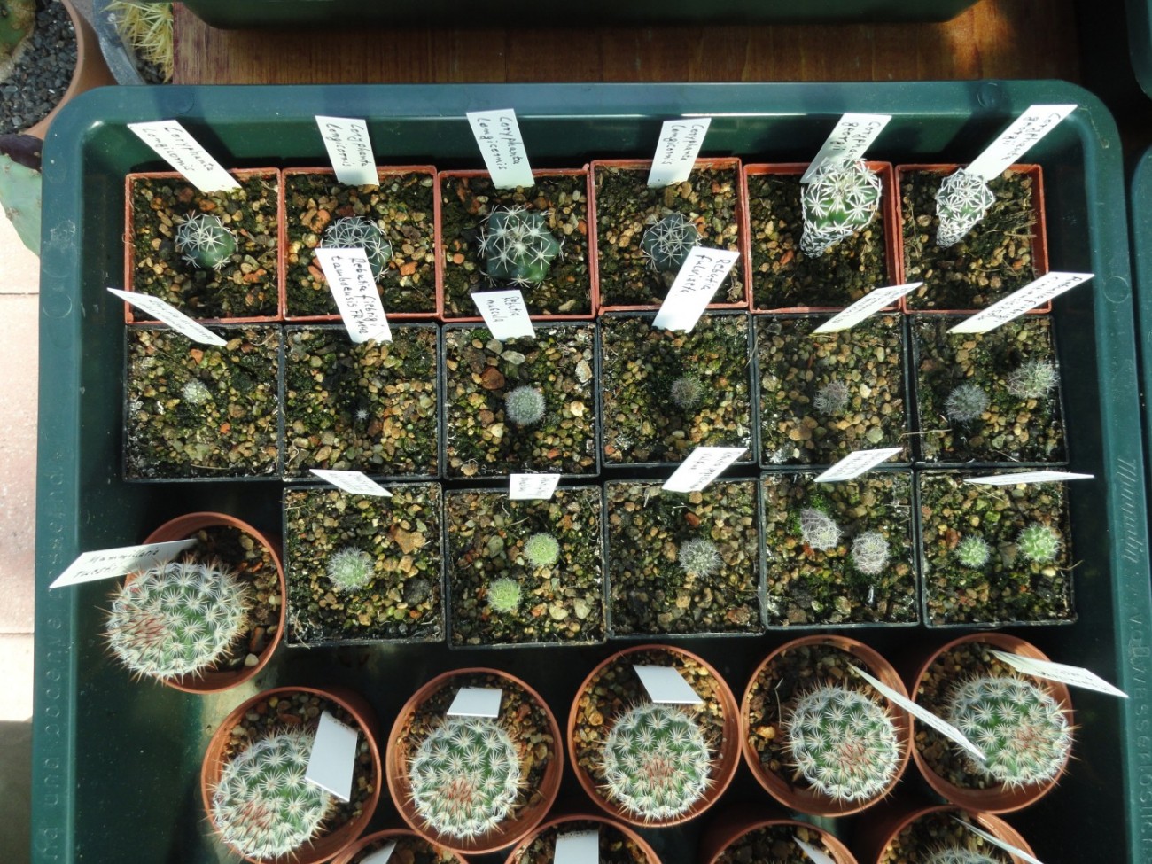 vor 2 Jahren habe ich Rebutia pulvinosa, Rebutia wessneriana und Rebutia xanthocarpa eingesät. Im ersten Jahr waren sie noch ziemlich klein und ich hatte die Befürchtung, dass sie die Winterruhe nicht überstehen. Inzwischen sind sie schon ganz schön gewachsen, die Rebutia wessneriana haben einen Durchmesser von 3 - 5 cm, die Rebutia xanthocarpa 2 - 3 cm und die Rebutia pulvinosa 3 - 4 cm und diese hat dieses Jahr auch schon geblüht. Letztes Jahr habe ich eine ganze Reihe anderer Rebutien eingesät, die ich unter Kunstlicht über den Winter gebracht habe, inzwischen stehen sie im Gewächshaus, mal sehen wie sich die dieses Jahr noch weiterentwickeln. Kann schon sein, dass ein paar während der Winterruhe noch den Geist aufgeben. Ist halt immer ein mühsames Geschäft mit der Nachzucht aus Samen.